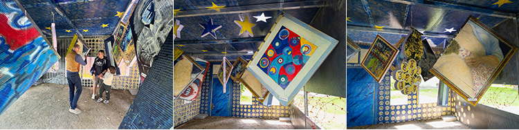 | EUROPA 2024 Installation vom 7. bis 9. Juni 2024 Film: „... EUROPA 2024...“, Regie: Dieter Reifarth ![]() EUROPA 2024 – verdichtet in einer Installation auf 19,44 qm vor meinem Atelierhaus in Niederrad. Davor gehen Menschen aus aller Welt, meine Nachbarn, auf und ab. Wir kommen miteinander ins Gespräch, reden über ihren Blick auf den Kontinent und ihr Bild das sie sich von ihm machen. Ein Film entsteht daraus. Die Installation ging aus einem Zufallsfund hervor: Drei Alumünzen, die ich am Strand von Montpellier auflas. Sie erzählen von einer Vergangenheit, deren Echo die Ideale der Aufklärung, aber auch Chauvinismus, Krieg und Totalitarismus in unsere Gegenwart weht. Von einer Staatengemeinschaft, die jahrzehntelang Frieden gewährleistet, kräftig miteinander wirtschaftet und sich zusehends in einer Festung verschanzt. Was wird aus unserem demokratischen und gemeinsamen europäischen Haus, seiner Kultur, seiner Vielfalt, seiner Politik? Wer mochte konnte sich überdies an der eßbaren Sonderwährung EUROPAN erfreuen, die in handsignierten Beutelchen neu aufgelegt war. mehr Bilder auf ▶ www.euro-pan.com | |||||||