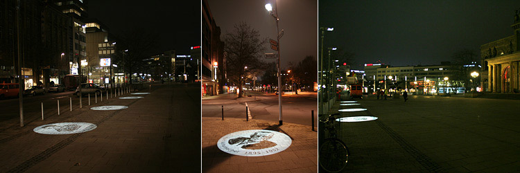 | Zehn „Leuchtende Vorbilder“ , ständige Außeninstallation in Hannover, Dezember 2007. | |||||||