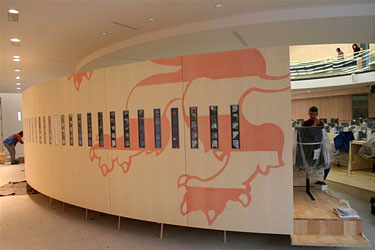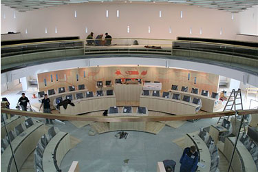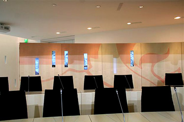 Plenarsaalgebäude Hessischer Landtag, Wiesbaden, Plenarbereich (Plenarsaalwand, Rückwand, Lobbywand). | |||||||