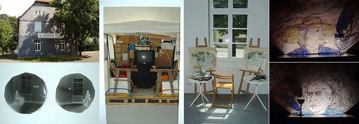 18.6. bis 25.7.2004 Dieser Keller war für Vollrad Kutscher eine Fundgrube fremder Erinnerungen, eine Fundgrube der Relikte vergangener Handlungen und Ereignisse, die neu gesehen werden müssen. Dabei wird die Fragwürdigkeit vieler Vergangenheits-Relikte ebenso deutlich wie ihre Wertschätzung, denn es ist ja nichts einfach auf den Müll geworfen, sondern mehr oder weniger zwingend in einen neuen Gesamtzusammenhang gestellt, in einen Neubau der Zusammenhänge. Und auch formal schafft der Künstler es, sein Wohlwollen und seine Strenge umzusetzen, indem er als Grundprinzip seiner Ordnung etwas wie eine "relaxed symmetry" schafft. Diese "entspannte Symmetrie" entsteht durch die paarweise Zuordnung von Gegenständen. Und damit ist das eigentlich große Thema dieser Ausstellung angesprochen, das sich - wiederum literarisch - mit "Paare, Passanten" überschreiben ließe. Wie in der Literatur ergibt sich auch hier "ein Kaleidoskop unserer Gesellschaft, ein Puzzle aus spontanen Einzelbeobachtungen, die immer wieder den Blick lenken auf das eigene Bedürfnis nach Perfektion und den Stachel ins eigene Fleisch treiben, wo wir selbst einem gedankenlosen Konsumrausch anheim zu fallen drohen." Dabei setzt Vollrad Kutscher bewusst unperfekte Mittel ein; sei es, dass er mit der Lochkamera Langzeitbelichtungen vornimmt oder digital den Augenblick fixiert, dass er die Philosophen der Frankfurter Schule als Licht-Schemen sich auf modriger Kellerwand begegnen lässt und dadurch vielschichtig und hintersinnig Bedeutungsebenen schafft. Aber trauen wir nicht nur dem Philosophenpaar, sondern vor allem dem eigenen Augenpaar. Mit verschiedensten Medien sind wir in dieser Ausstellung konfrontiert und es wird uns hier deutlich, dass wirklich alles mit allem zusammenhängt. Und das wiederum bedeutet, dass keine Entscheidung, die wir treffen, folgenlos bleibt, dass sie Wirkungen in anderen Räumen - und das ist auch im übertragenen Sinne zu verstehen - hervorrufen. Und unser aller Bedürfnis nach Sicherheit? - Sicherheit können wir in dieser Ausstellung wohl nicht bekommen. Ulfried Weingarten |