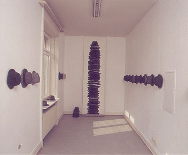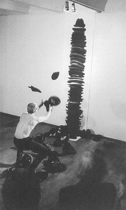 Hut-Performance/Hat-Performance, Militärhose, Stiefel, Hüte, Fotografie, Dauer: 20 min, Fundació Joan Mitó, Barcelona 1983 ![]() |