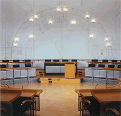 Einen Bogen spannen mit "Leuchtenden Vorbildern" 1998 gewinnt der Frankfurter Künstler Vollrad Kutscher den Wettbewerb zur künstlerischen Gestaltung des Rüsselsheimer Rathaussaales. In seiner Arbeit "Einen Bogen spannen mit leuchtenden Vorbildern" setzt er sich mit der Topografie und den menschlichen Vorbildern der Stadt Rüsselsheim auseinander, allen voran Adam und Sophie Opel. Idee und Intention Kutschers ist es, den Dialog mit dem Ort und seinen Menschen zu fördern und einen wiederkehrenden Diskussionsprozess über das Selbstbild der Stadt Rüsselsheim zu ermöglichen. In der Reflexion von beispielhaftem Handeln und Wirken bereits verstorbener Mitbürger soll die intensive Auseinandersetzung mit bedeutenden Biografien und der Geschichte Rüsselsheims gefördert werden.In der so genannten "Galerie aus Licht" installiert Kutscher insgesamt 14 Glühbirnen mit den in Miniaturmalerei aufgebrachten Portraits der ausgewählten Vorbilder. In einer Negativ-Projektion wachen diese an der Rückwand des Ratssaales symbolisch über die Debatten der Parlamentarier. Das 2001 ins Leben gerufene Rüsselsheimer Kunstprojekt Leuchtende Vorbilder wird fortgesetzt. Die Projektion eines weiteren verdienten Gemeindemitglieds wird 2004 die Galerie mit Portraits aus Licht an der Wand des Ratssaales ergänzen. Alle drei Jahre wird die Galerie mit einem weiteren Vorbild der Stadt Rüsselsheim ergänzt. Bisher sind drei Plätze vergeben. Neben Adam und Sophie Opel wurde 2001 der Nazi-Wiederstandskämpfer Walter Rietig ausgewählt. Deshalb sind die Rüsselsheimer Bürgerinnen und Bürger aller Generationen ausdrücklich aufgerufen, zu entscheiden, wen sie persönlich für geeignet erachten! Die "Leuchtenden Vorbilder" sollen dabei nicht als Sinnbild übermenschlicher Figuren verstanden werden, sondern vielmehr bewundernswertes oder bedeutendes bürgerliches Engagement im alltäglichen "Miteinander" auszeichnen. Vorschläge für das "Leuchtende Vorbild 2004" können, zusammen mit einer schriftlichen Begründung, bis zum 30. Juni 2004 beim Kulturamt Rüsselsheim eingereicht werden. Das vierte Vorbild wird im Oktober 2004 bekannt gegeben. |